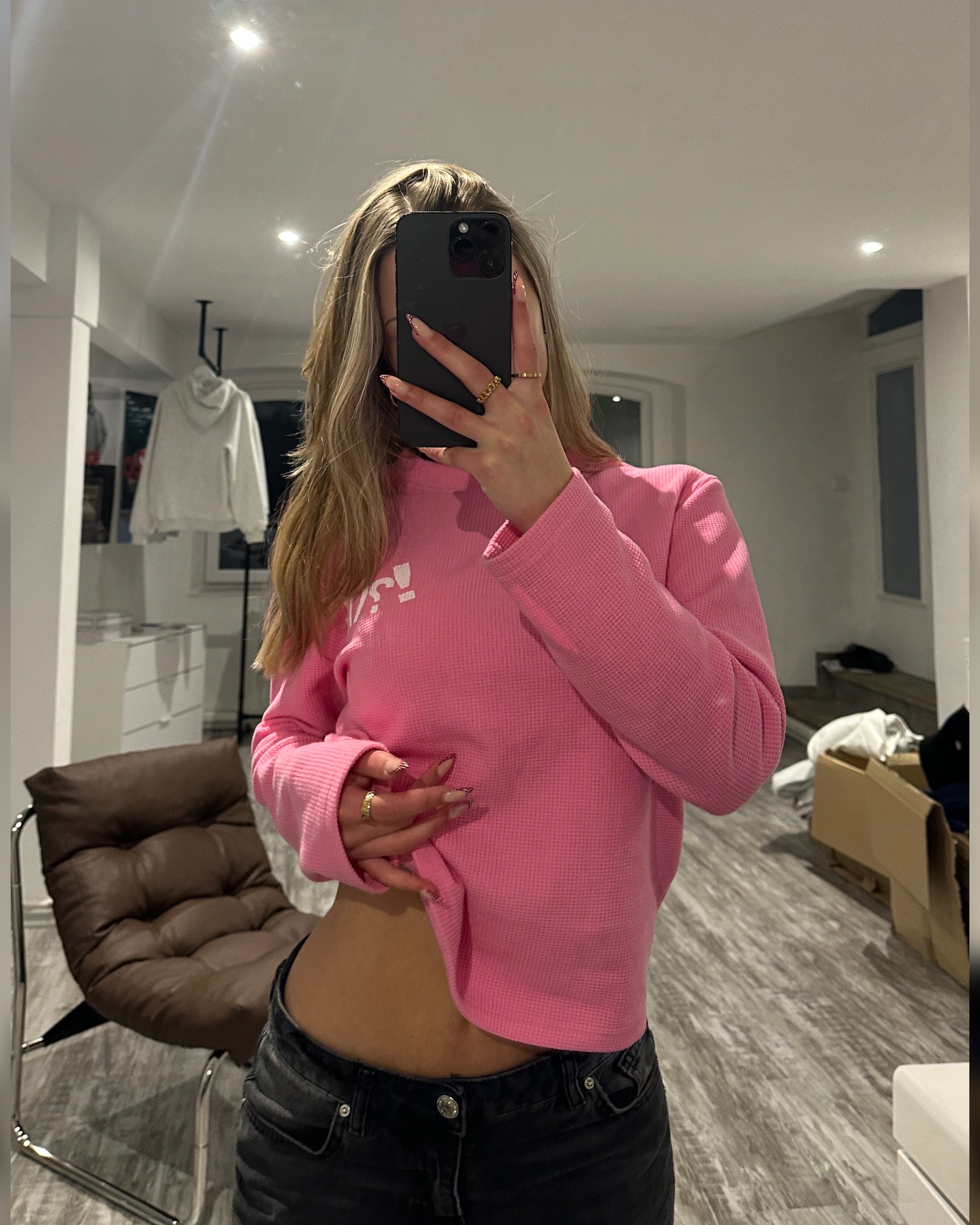 Waffle sweater pink